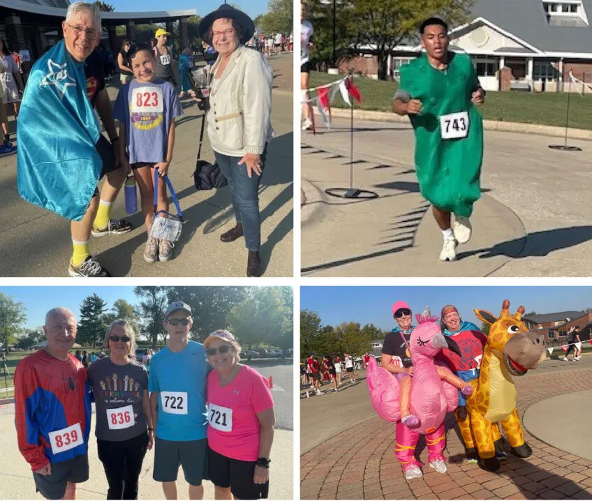 Every superhero knows that the right outfit can make all the difference — and our 5K fashion did not disappoint! From Spider-Man swinging by the starting line to Super Squirrel dribbling a soccer ball the entire course, and with Superwomen and Super Kitties striking heroic poses, our course was full of color and creativity. A special shoutout to the pickle hero representing the Illini Get Pickled Pickleball Tournament (another amazing Cunningham fundraiser!), the blow-up animal brigade, the always-energetic Thing 1 and Thing 2 and everyone wearing their Cunningham cape. You all brought the fun, flair, and fearless spirit of the day to life!